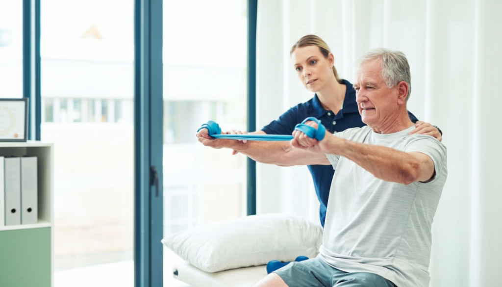 • Strength, flexibility, and coordination exercises: OT may include stretching and exercise to increase your strength, flexibility, and mobility. These techniques typically involve using resistance bands for strength or restoring balance and coordination.