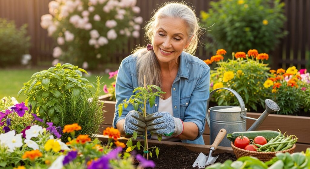 • Neuromuscular Control: Practice exercises that engage both your brain and muscles, like balance exercises to avoid trips and falls over uneven terrain or gardening tools, making it easier to navigate through your garden.