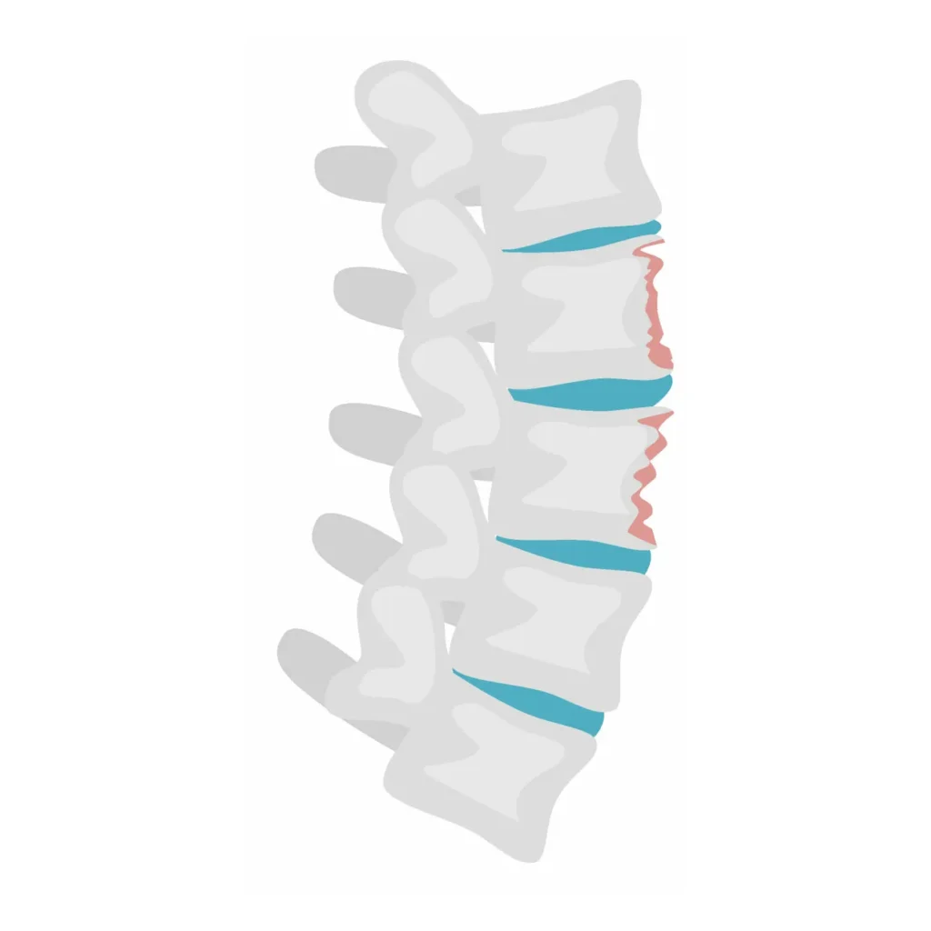 As we age, the discs between the vertebrae deteriorate, which can cause pain, especially if one disc is worn down significantly.